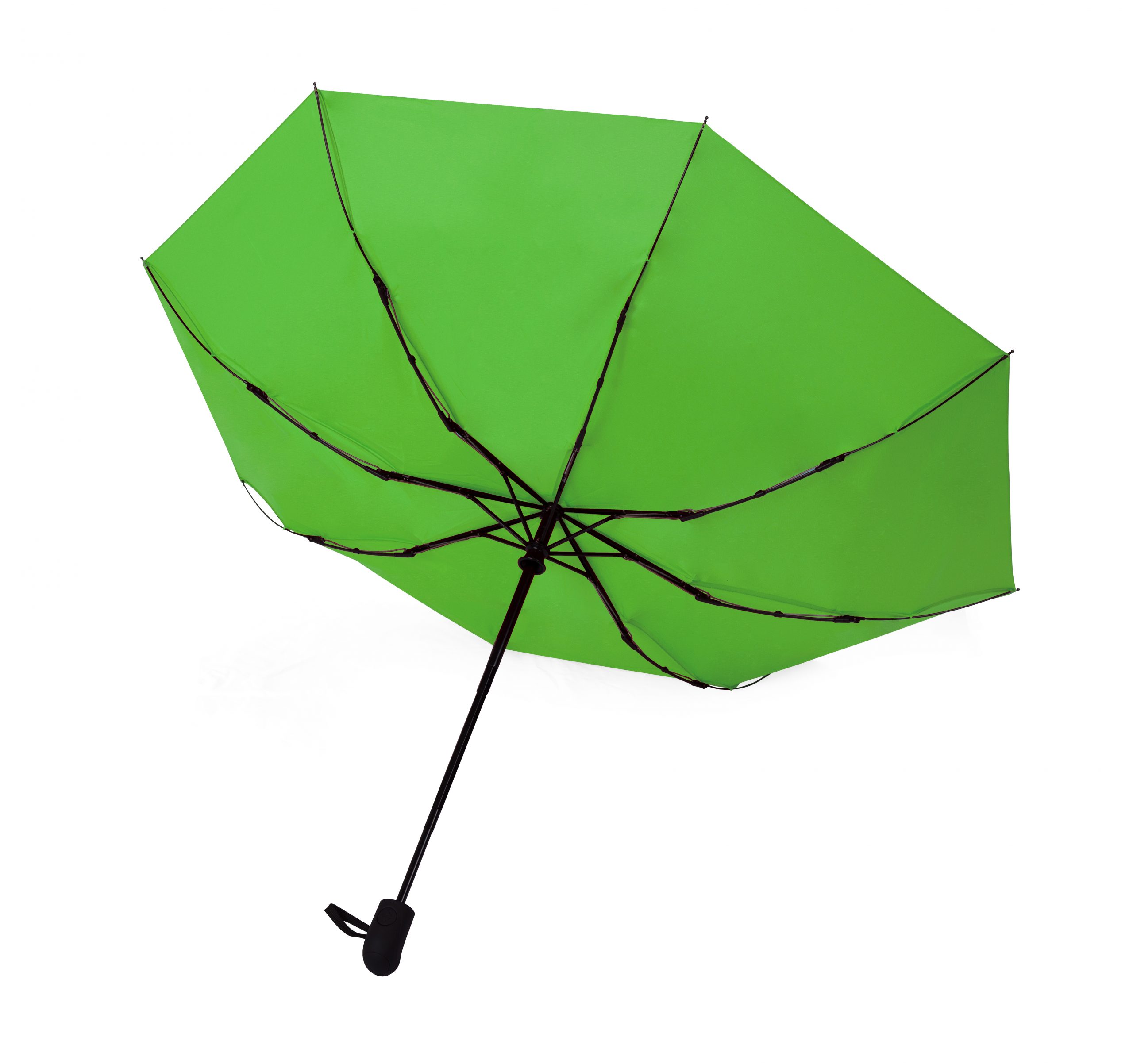 Автоматична складна парасоля Milano зі зручною пластиковою ручкою (покриття софттач), купол з матеріалу Епонж 190Т, діаметр купола 96 см., довжина в складеному стані 28 см. Парасоля має надійний механізм антивітер (спеціальні пружини в ланках спиць виготовлені з вуглепластику)